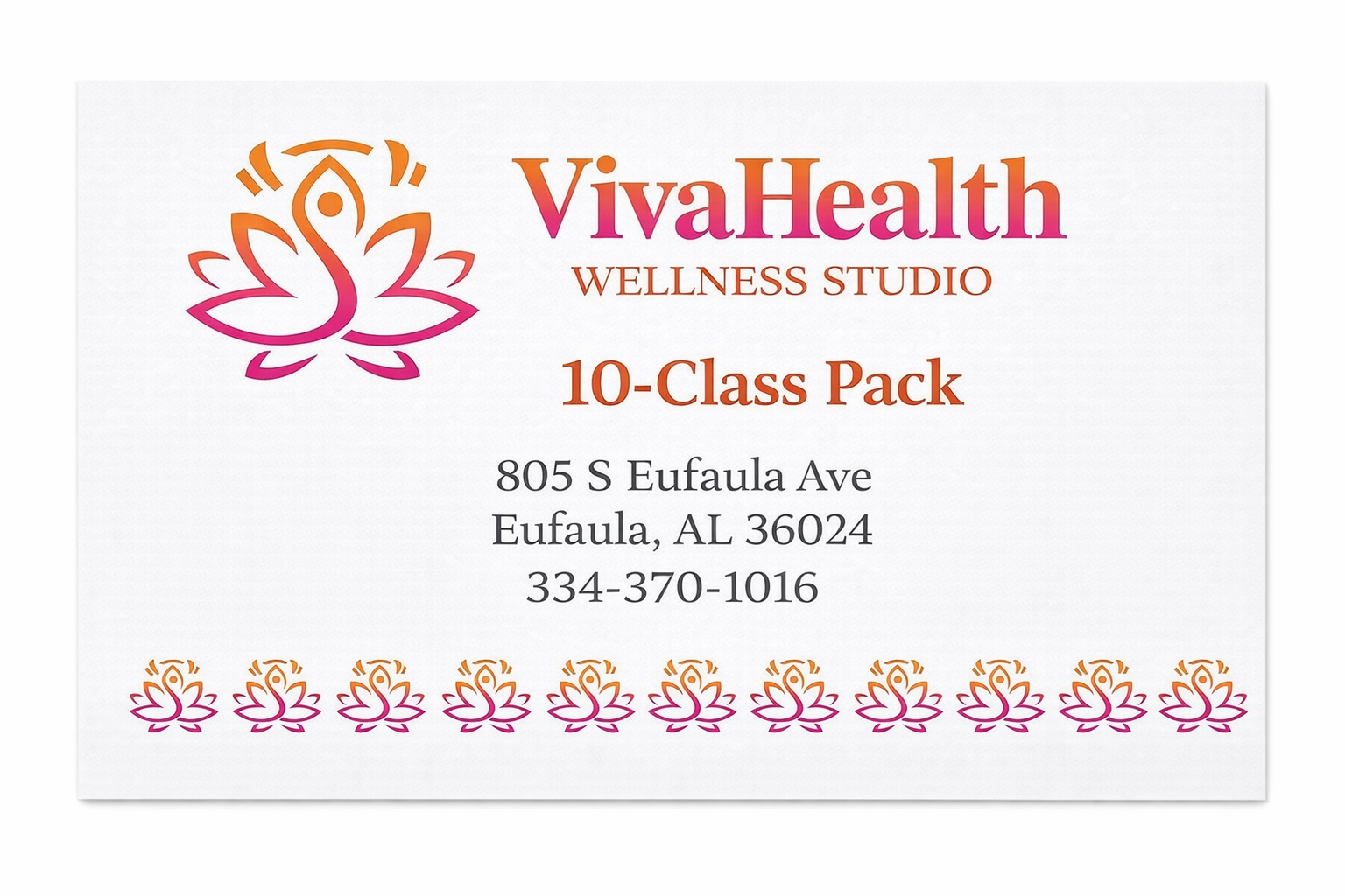 10 class credits — use one per class booking. Save $20 vs drop-in pricing.